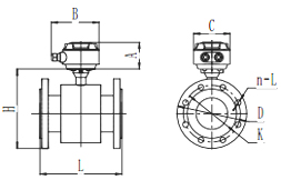 在圖1-1中,當(dāng)導(dǎo)電流體以平均流速V(智能電磁流量計(jì)工作原理)通過裝有一對(duì)測(cè)量電極的一根內(nèi)徑為D(智能電磁流量計(jì)工作原理)的絕緣管子流動(dòng)時(shí),并且該管子處于一個(gè)均勻的磁感應(yīng)強(qiáng)度為B(T)的磁場(chǎng)中。那么,在一對(duì)電極上就會(huì)感應(yīng)出垂直于磁場(chǎng)方和流動(dòng)方向的電動(dòng)勢(shì)(E)。由電磁感應(yīng)定律可寫做(1)式: