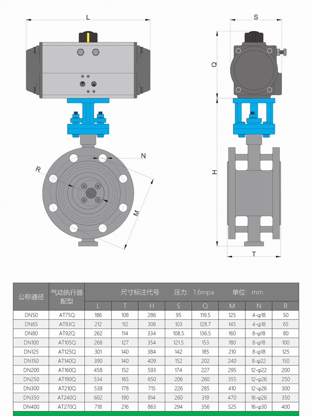 進口氣動硬密封法蘭蝶閥尺寸參數(shù)