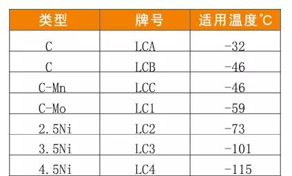 ASTMA352中最常用的三個(gè)牌號(hào)為用于-46℃的LCB\LCC,用于-101℃的LC3.對于低于-101℃以下至-196℃的工況條件下一般次啊用奧氏體鋼鑄件,如CF8、CF8M。