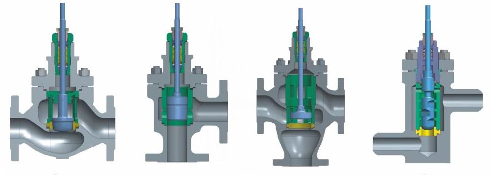 角形閥體除外形為直角形外,其他與直通閥體完全通用。具有結(jié)構(gòu)緊湊、道路簡(jiǎn)單、阻力小等特點(diǎn)。特別適用于易枯焦,易堵塞,高粘度的工況。